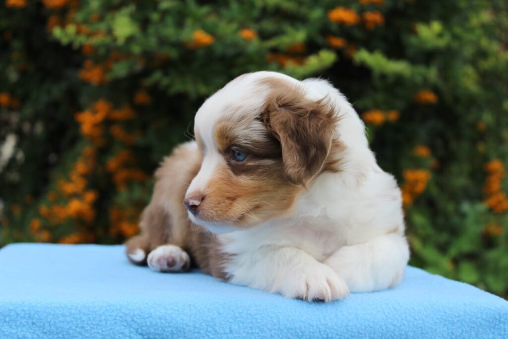 Arlo est un magnifique mâle berger australien toy qui devrait faire autour de 5kg à l’âge adulte. Maman est une très jolie Berger américain miniature Bleu Merle. Papa est un magnifique berger américain miniature Rouge tricolore.